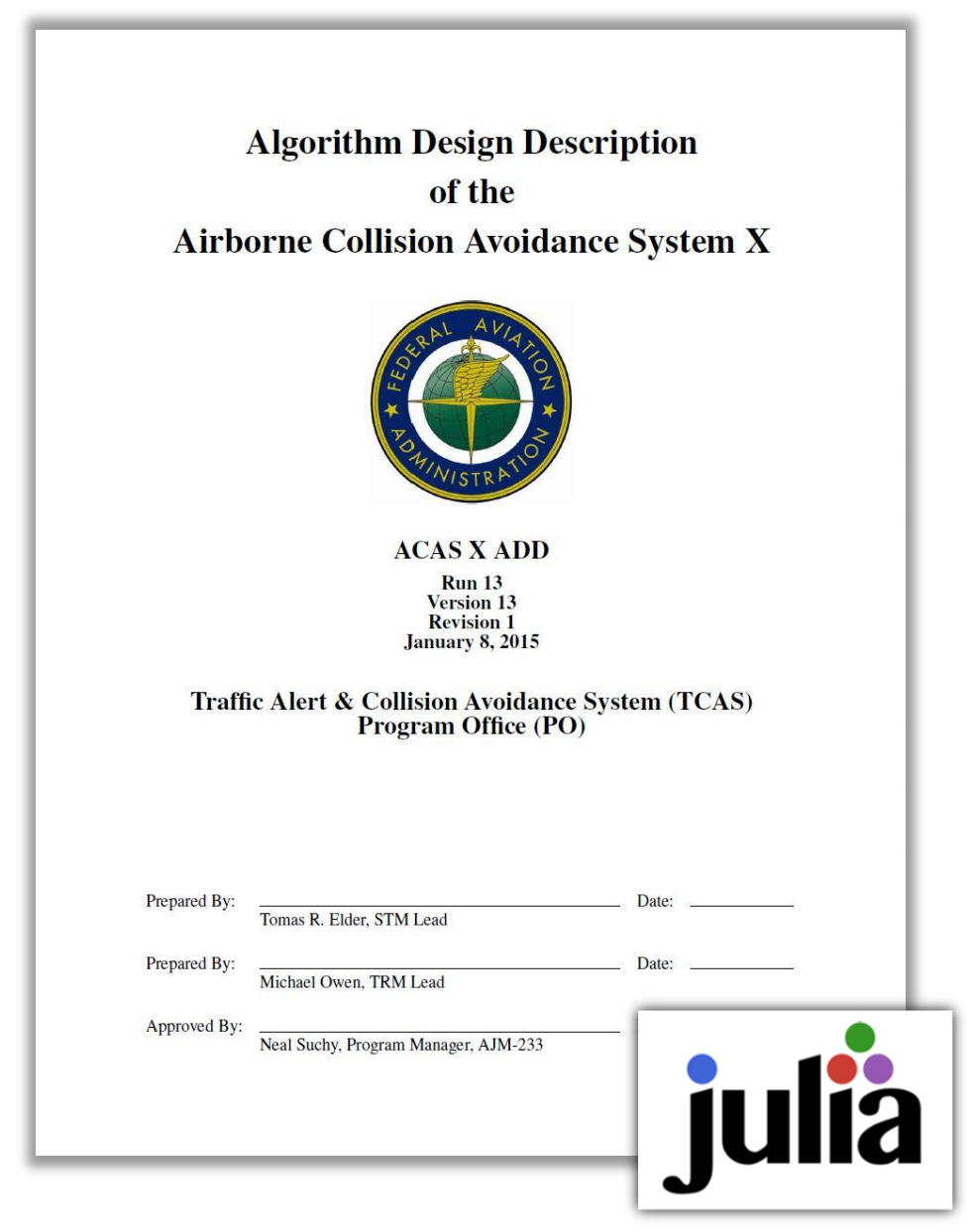 Using Julia as a Specification Language for the Next-Generation Airborne Collision Avoidance System